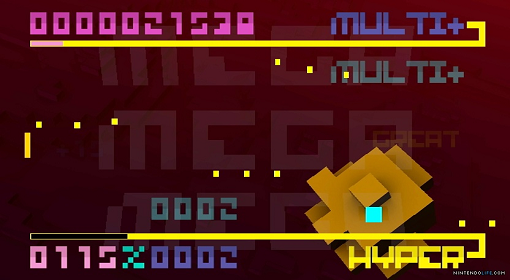 The game starts off with you having to keep track of just one bit at a time, but pretty soon you'll be fending off waves of bits, many moving in unique patterns. Some of the bits' patterns seem a little unfairly complex. This and the game's high difficulty wouldn't be an issue, if the stages themselves weren't so long. Each stage is about fifteen minutes long, and it's incredibly frustrating to have to play through the majority of the stage over and over again only to get tripped up by something near the end of the stage. In fact, in this retrospective feature at NintendoLife the developers even admit that they "wish that we’d come up with some sort of checkpoint system".